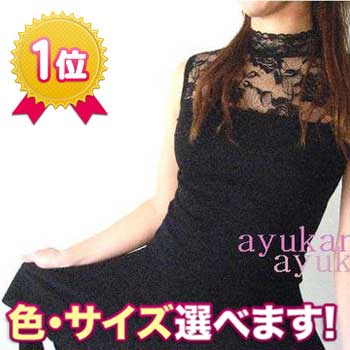 胸切り替えタイプのレース地のノースリーブカットソーです。