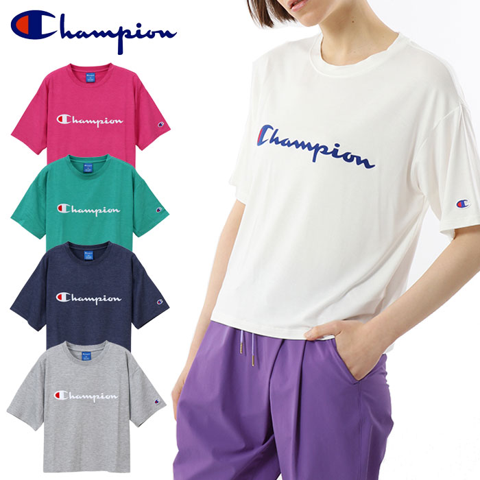 新作 チャンピオン Tシャツ 上 レディース Champion ロゴ 半袖 送料無料|スポーツウェア トレーニング ウェア ウエア ジム フィットネス かわいい 大きいサイズ 有 スポーツ おしゃれ ブランド