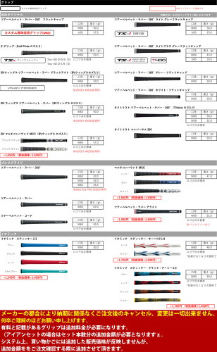 注意事項 ※ページ掲載以外のシャフトの関しましては組立て対象シャフトとしてメーカー承認がされておらず、受注致しかねますので、ご了承頂きます様お願い申し上げます。